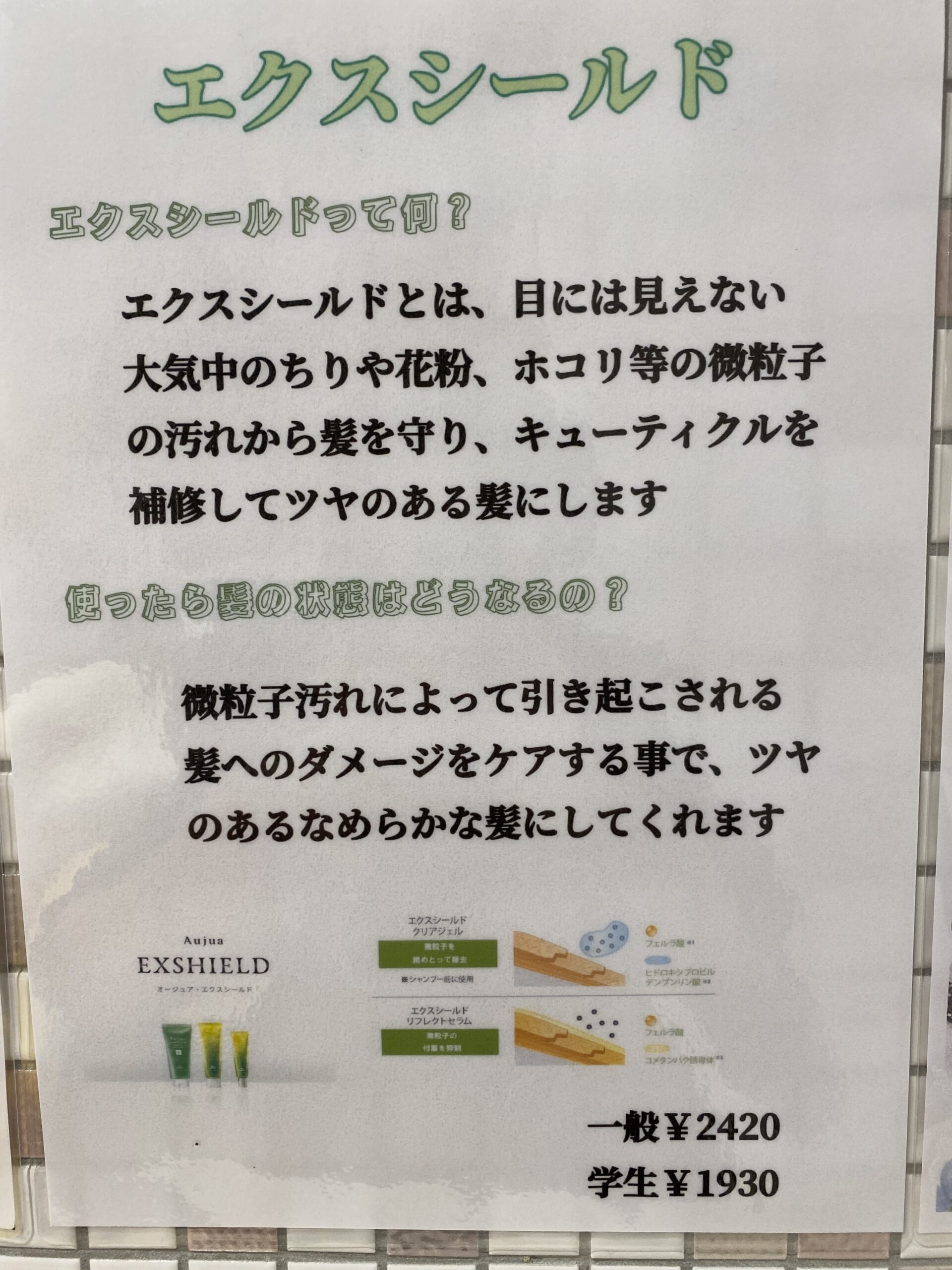 今月は空気中の花粉やほこりなどのポリューション物質といわれる物を除去して着きにくくしてくれるエクスシールドが次回予告で他のトリートメントと一緒にしても半額になるキャンペーンをしてます!