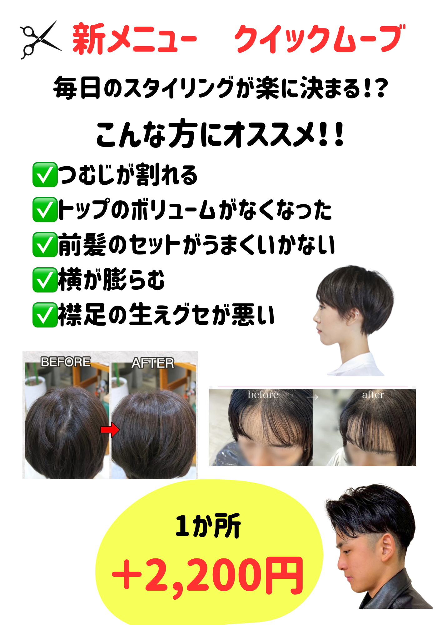 こんにちは太田店2月はパーマのキャンペーンになっています。新メニュークイックムーブが登場です。痒いところに手が届くパーマメニューとなっております。