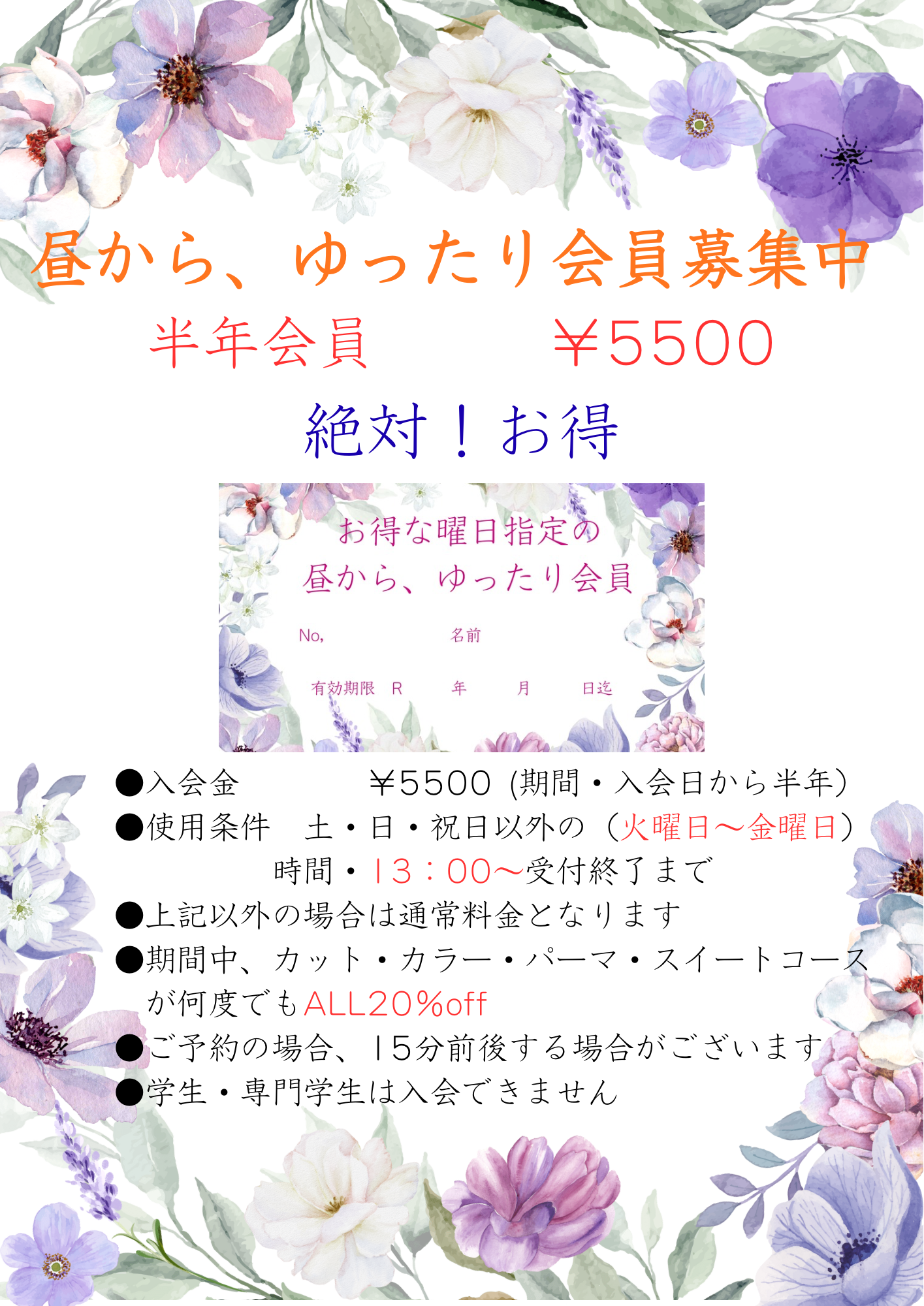 こんにちは2月からゆったり会員が新しくなります。これからもお得になりますので宜しくお願い致します。